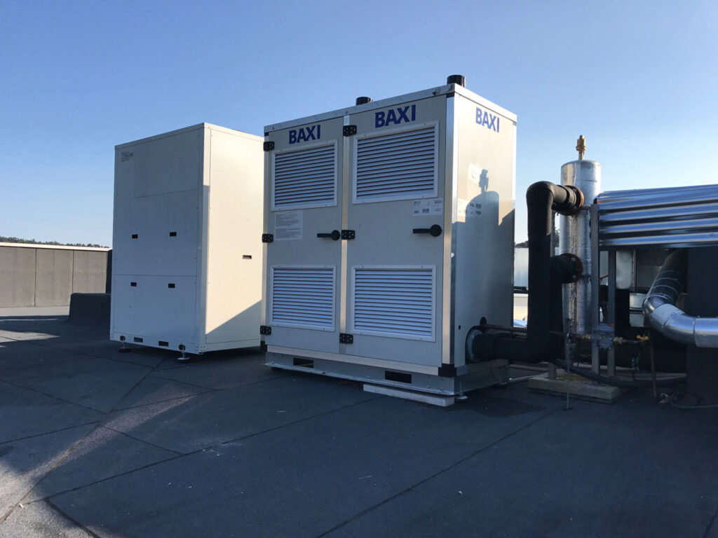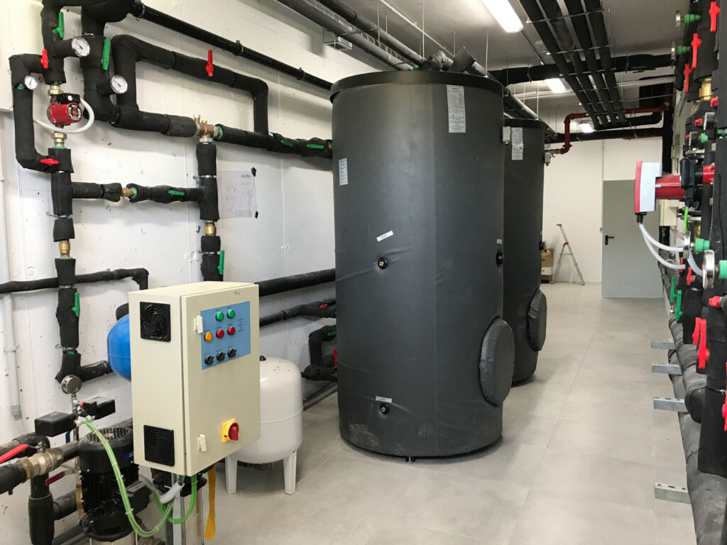 - Aerotermia sustitutiva de energía solar térmica. Bomba de calor de CO2 de 24 kW y depósitos acumuladores de ACS.
